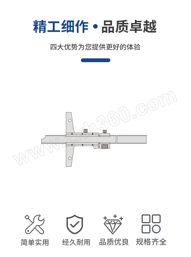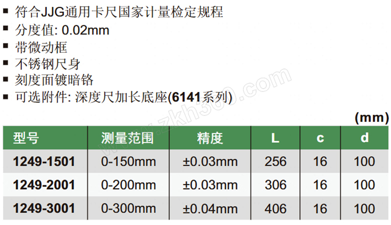 ·分度值:0.02mm。 ·带微动框。 ·不锈钢尺身。 ·刻度面镀暗铬。 ·可选附件:深度尺加长底座(6141系列)。