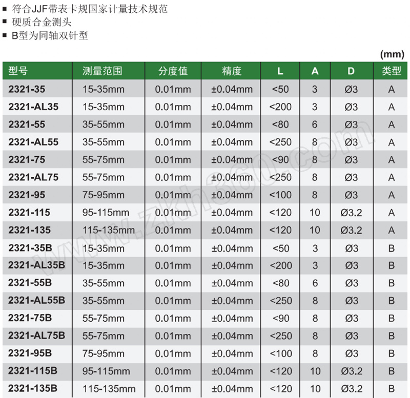 ·内卡规测头为硬质合金测头。 ·精度:±0.04mm